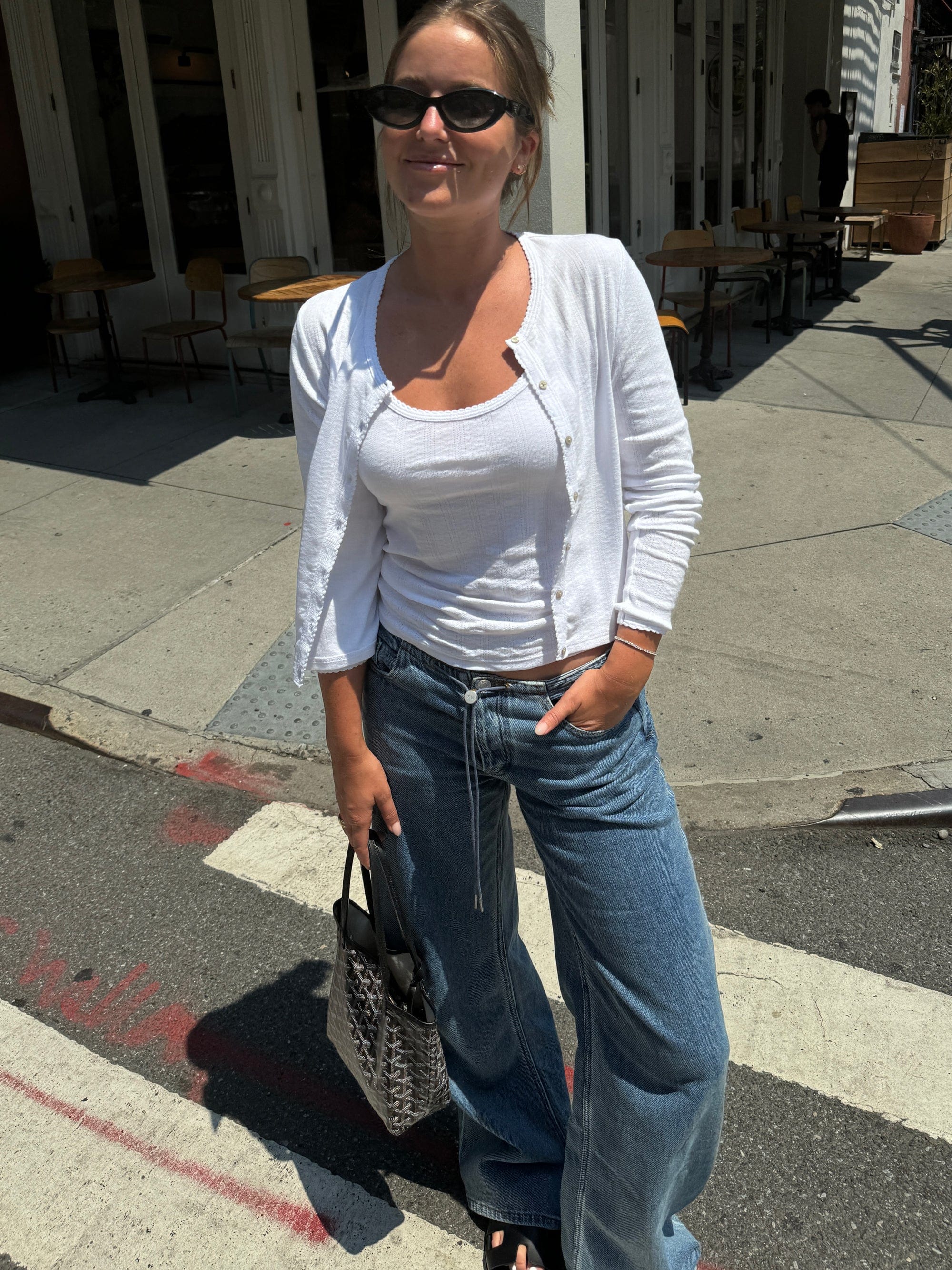 My favorite Goldie Tee is the Organic Boy Tee. It is the perfect staple piece and a classically good ‘white tee shirt’. There are so many ways to style it and since it is made of 100% cotton, it is a piece that will age perfectly within your wardrobe. I’m also loving the pointelle collection this summer—the feminine twist on white basics is too cute!