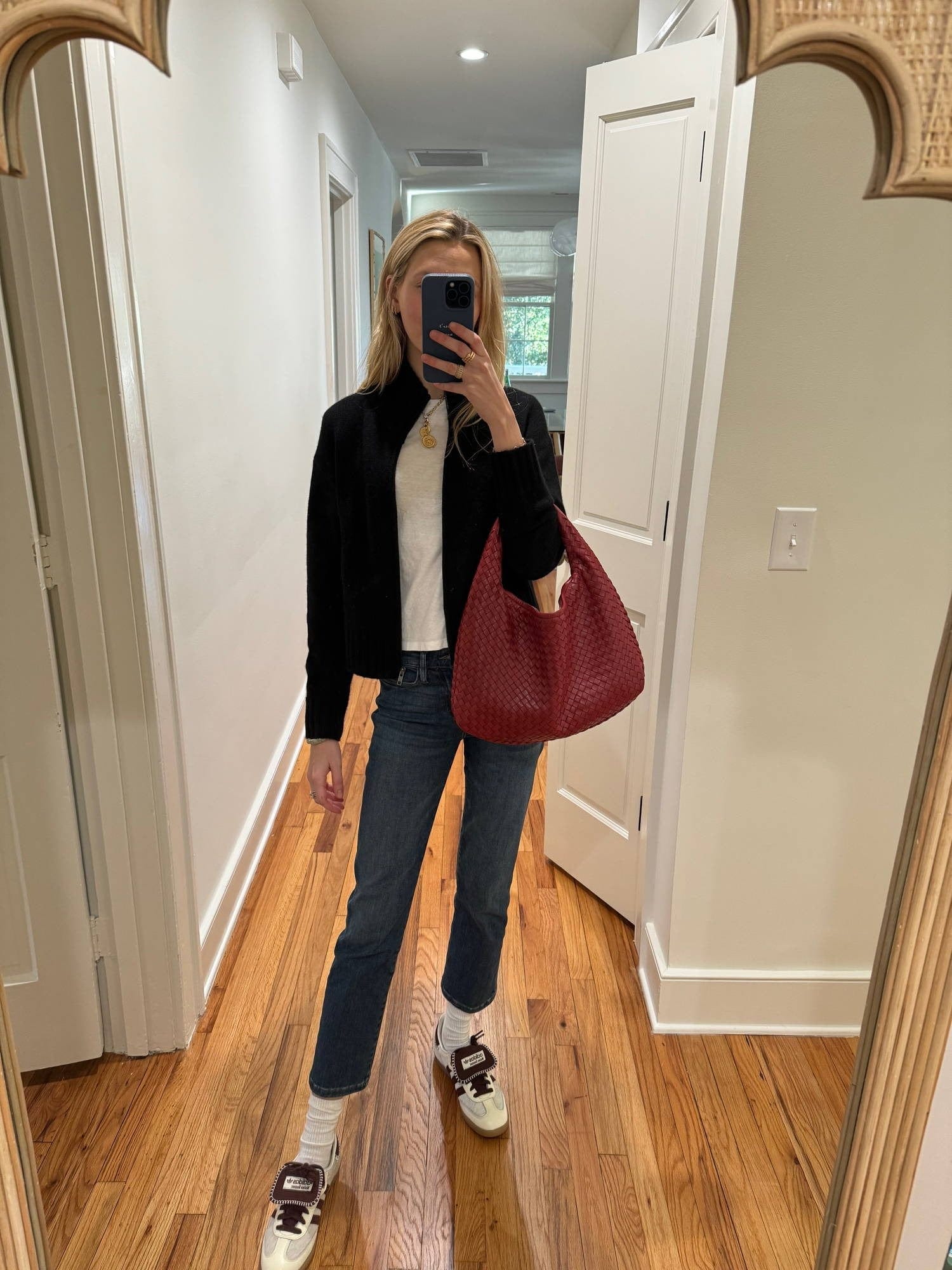 I am so excited to be able to wear jeans again as denim has long been a part of my daily uniform. Fall is my favorite season to dress for, and Charleston, my home for now, is serving up fall temps. You will catch me nowadays in straight-leg denim, a knit layered over a long sleeve tee, and my favorite sneakers as of late, my leopard sambas.