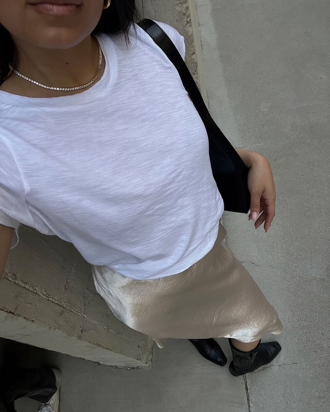 I would describe my summer style as chic, minimalist, and casual! The older I've gotten the more I've simplified my wardrobe and invested in quality pieces that will last me a lifetime. My ideal summer outfit typically consists of a simple tee, well-loved vintage denim, classic black sandals or mary janes, and a pair of stylish designer sunglasses. I’ve also embraced a lot more white in my summer wardrobe, adding a fresh and clean touch to my overall look.