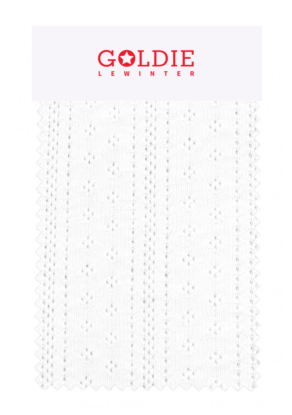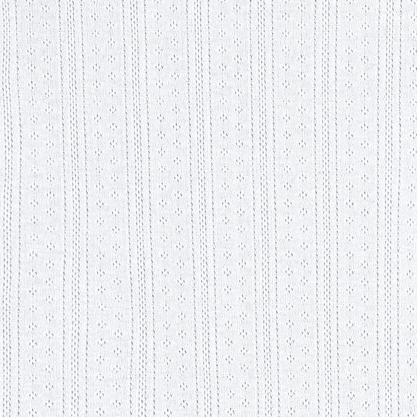 Classic pointelle reimagined for today with our whimsical signature knit. Made of 100% Peruvian cotton, this fabric is adorned with luxurious scalloped trim.