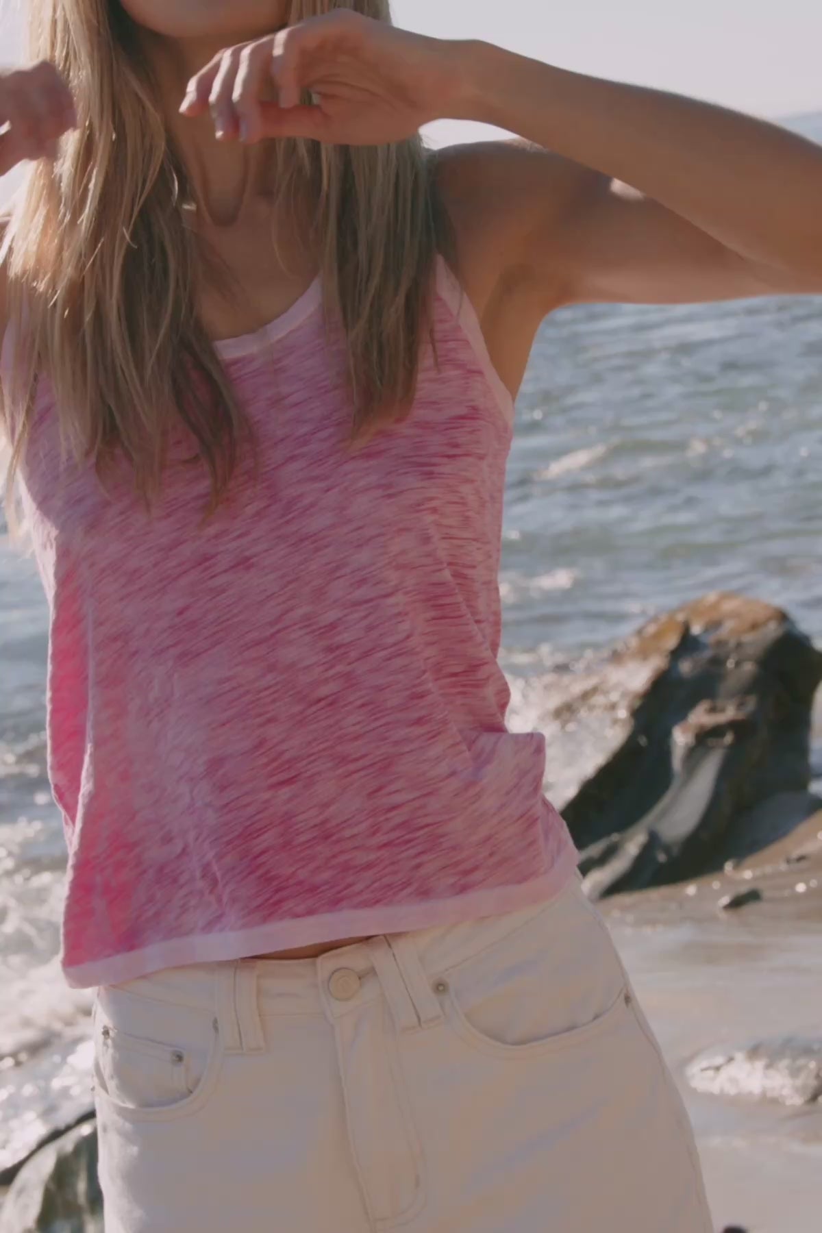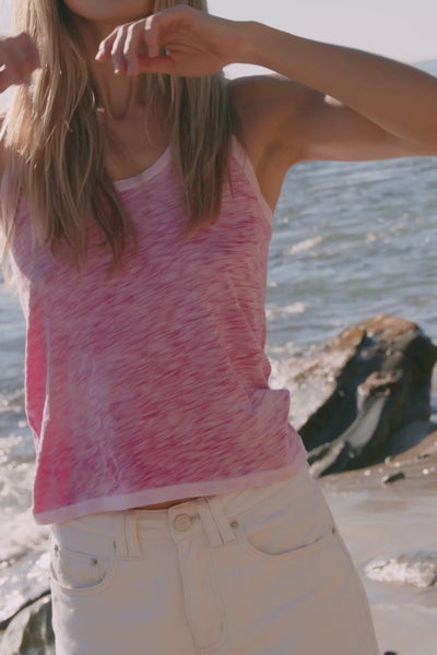 A new, irresistible coastal sunwash effect on our iconic racerback tank, perfected with the perfect scoop neck and whisper-weight fabric.