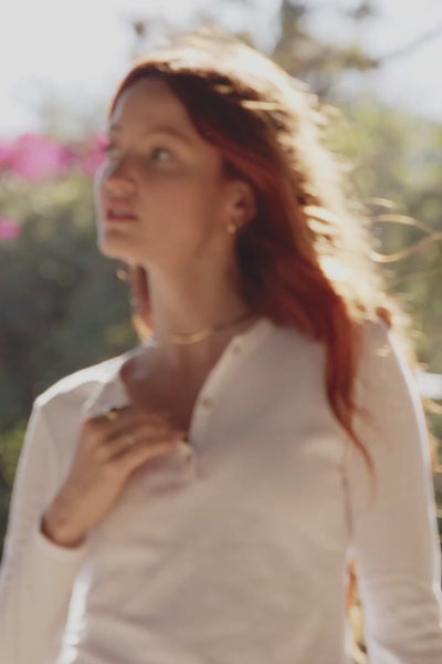 Classic pointelle reimagined for today with our whimsical signature knit. Made of 100% Peruvian cotton, this fabric is adorned with luxurious scalloped trim.